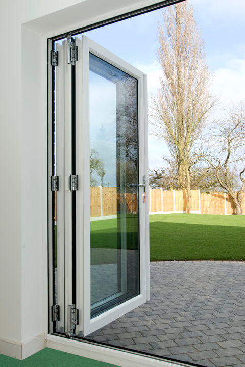 A bi-folding door opens up your home to create a seamless integration of your living space with the outside. When fully opened our bi-folds are slim and modest, and when closed they offer all the benefits of a modern double-glazed patio door. The main advantage of a bi-folding door over a sliding door, is that they enable the full space to open, whereas with a sliding door, you only have a section that opens.